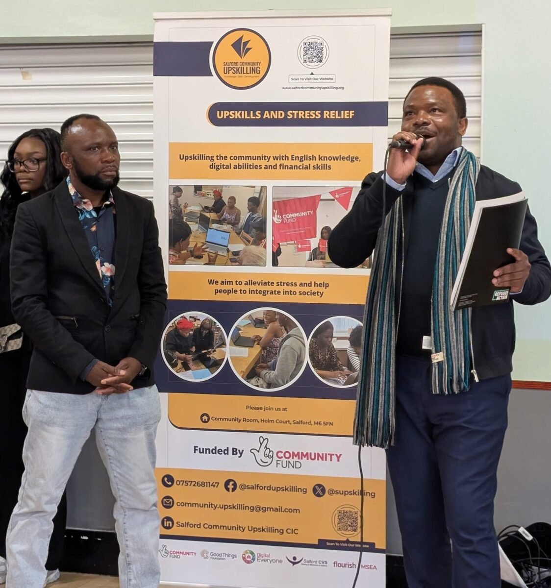 Guests were welcomed with the warmth and hospitality that have become hallmarks of Salford Community Upskilling’s events. The atmosphere was festive and emotional in equal measure — filled with the sounds of African drums, powerful poetry, meaningful speeches, and the aroma of delicious food shared among friends, families and neighbours.