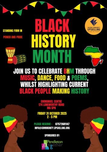 Join Salford Community Upskilling CIC for an inspiring Black History Month celebration featuring music, dance, food, and poetry.